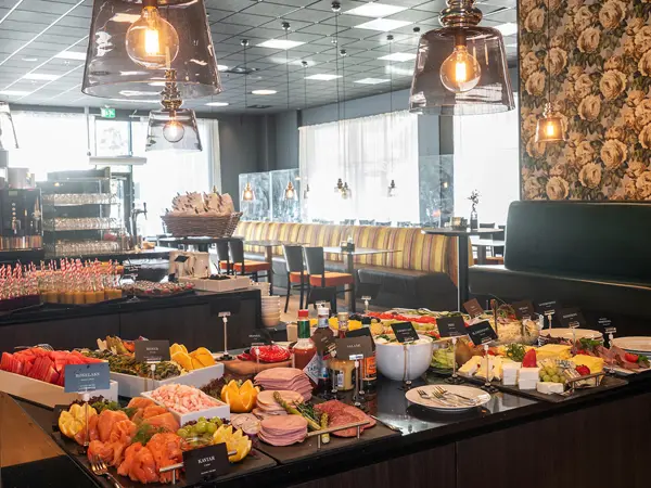Start dagen med en overdådig morgenbuffet, der blandt andet består af varme og kolde retter, frisk frugt, et bredt udvalg af pålæg samt kaffe, te og juice. Hotellet lægger stor vægt på kvalitet, så du kan få en god start på dagen.
