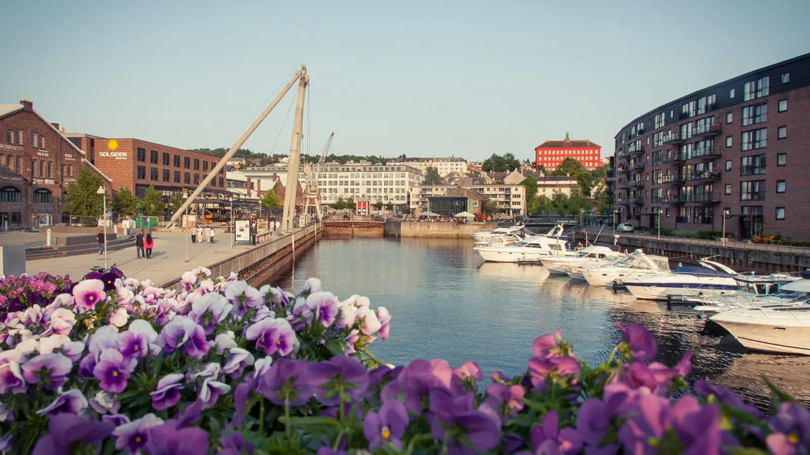 Fra Midtbyen kan du gå over Verftsbrua, der også er kendt som Blomsterbrua, til Solsiden. Her finder du både restauranter, kaffebarer, indkøbscentre og kulturhus.