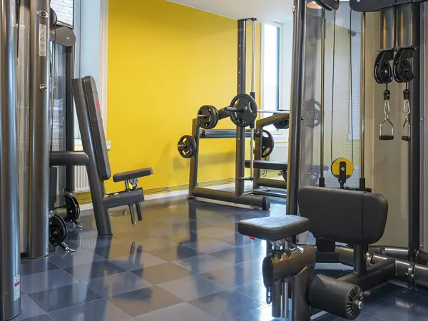 Du har gratis adgang til fitness-rummet under hele dit ophold. Her finder du forskellige træningsmaskiner til styrketræning, romaskine, løbebånd og meget mere.