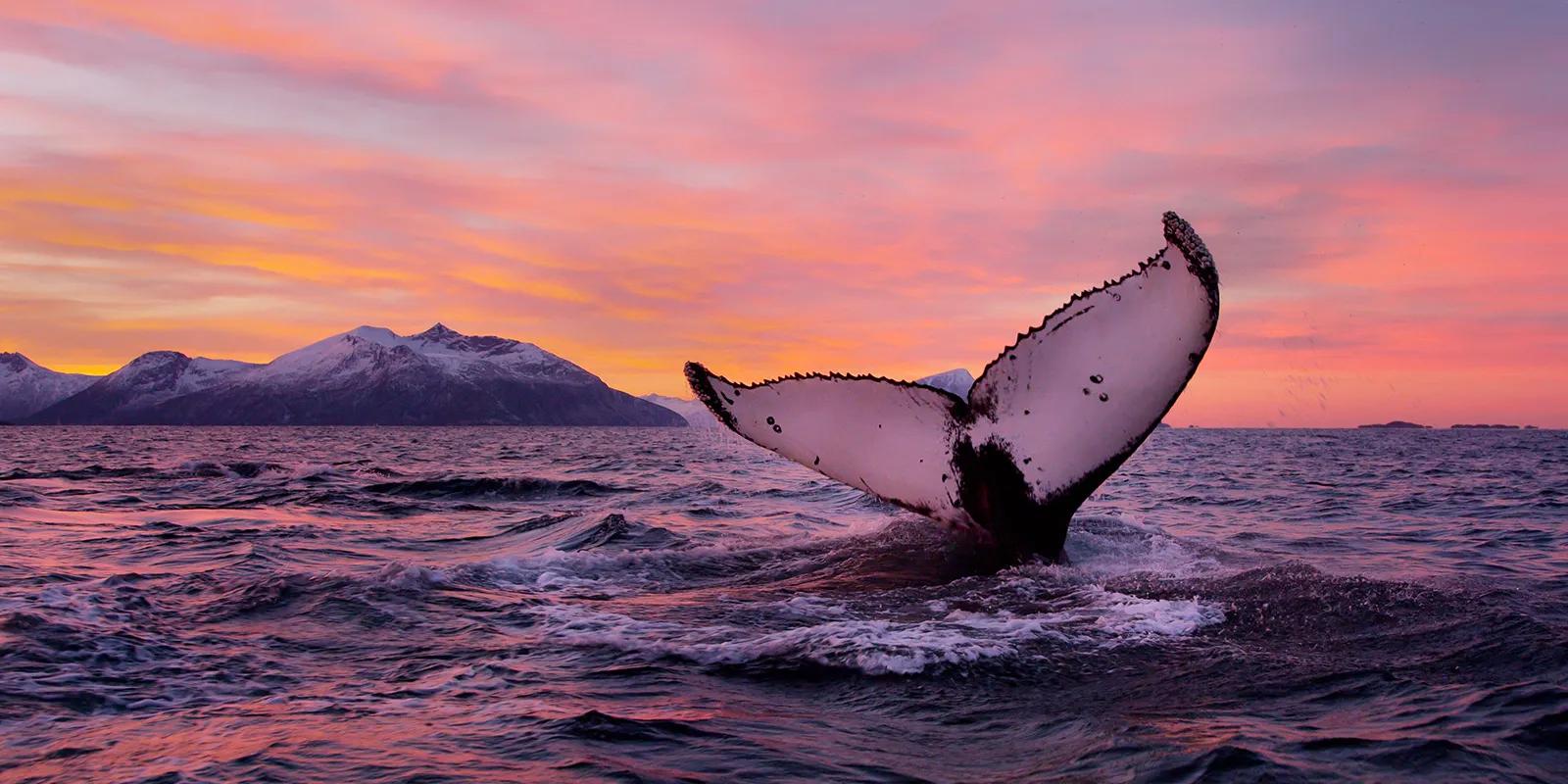 En hvalsafari står nok på enhver eventyrers «bucket list», og i Tromsø finnes flere fine måter å oppleve de majestetiske dyrene på. Hver vinter, fra november til januar, valfarter nemlig hvalen inn til kysten av Troms på jakt etter mat, og på hvalsafari kan du få oppleve både knølhval, spekkhogger, finnhval og niser på nært hold. Bli med Arctic Explorers hvor du blant annet kan velge mellom hvalsafari i RIB-båt eller på en stillegående hybridbåt, utstyrt med en undersjøisk drone og mikrofon.
