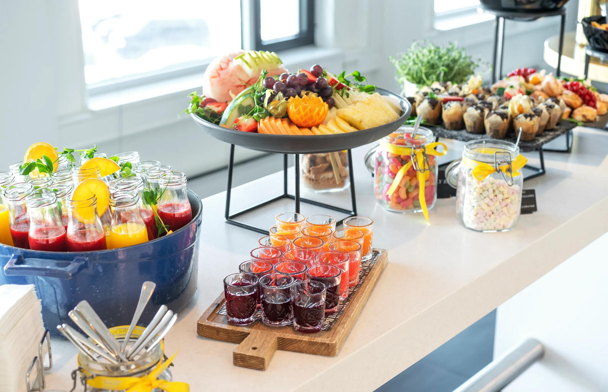 Når deltakerne sitter lenge i møterom, er pauser med mat og drikke viktig for konsentrasjonen.