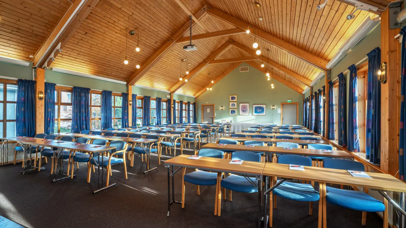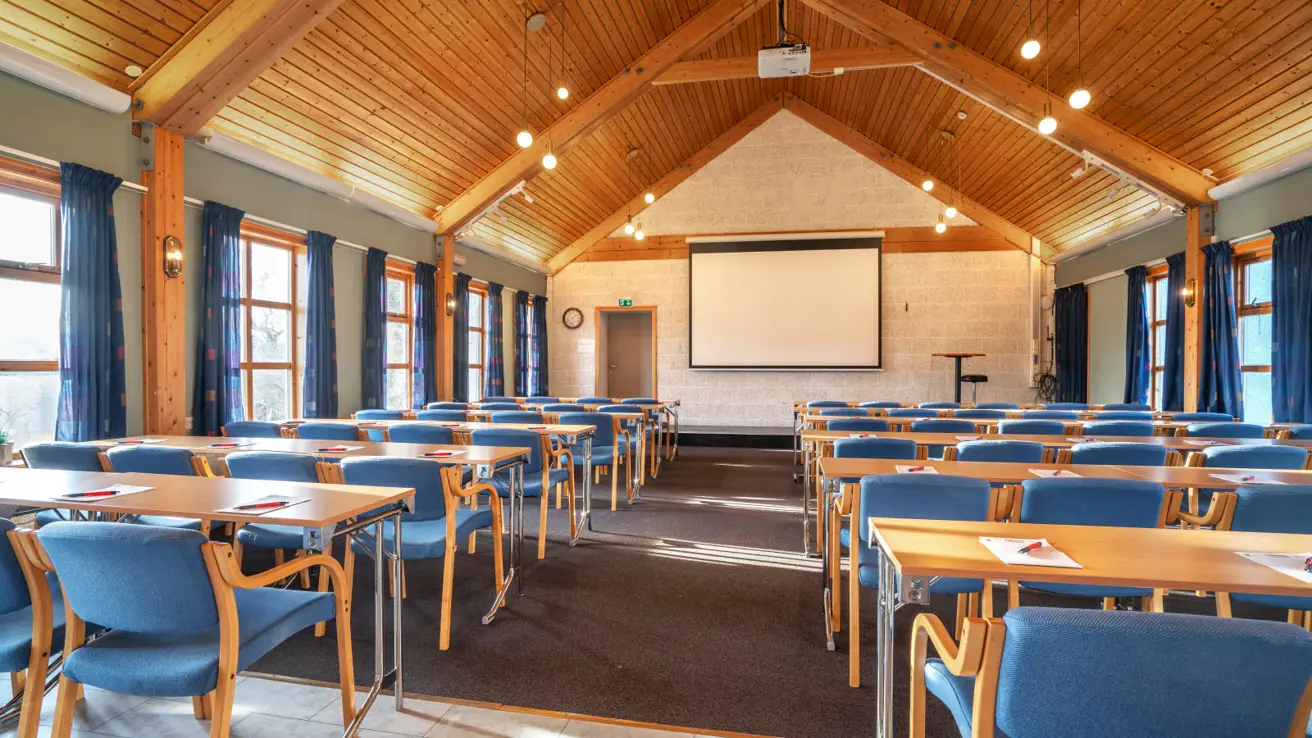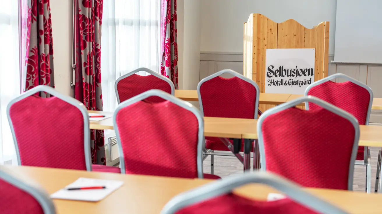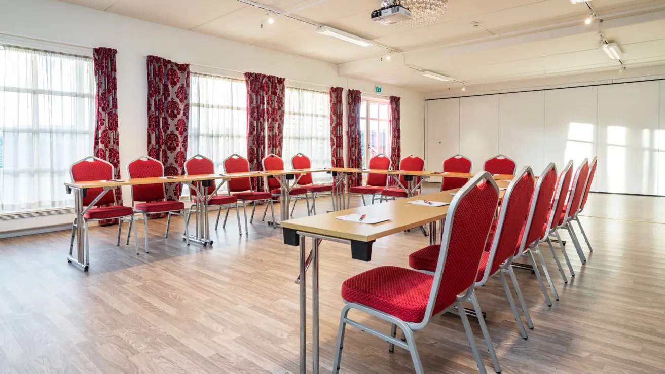 Fongen passer for små og mellomstore møter. Møterommet har store vinduer som gir rikelig med dagslys, og du har direkte utgang til uteplass.