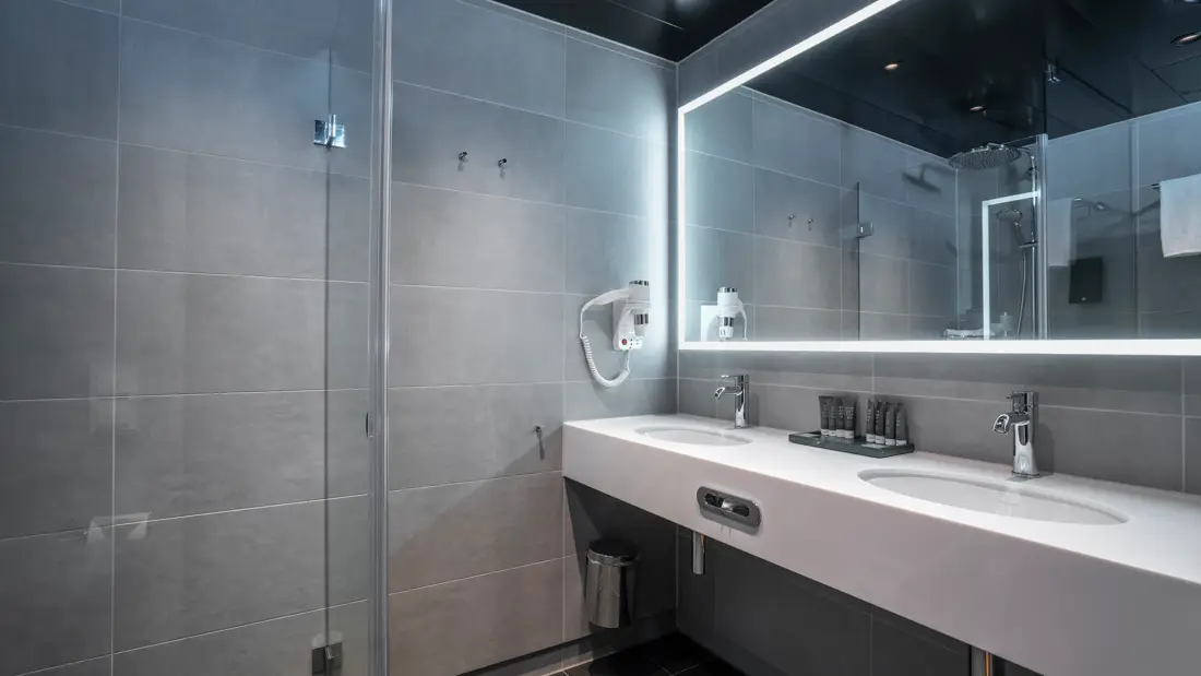 utsnitt av bad på handikapvennlig rom på thon hotel svolvær