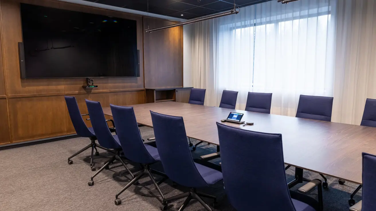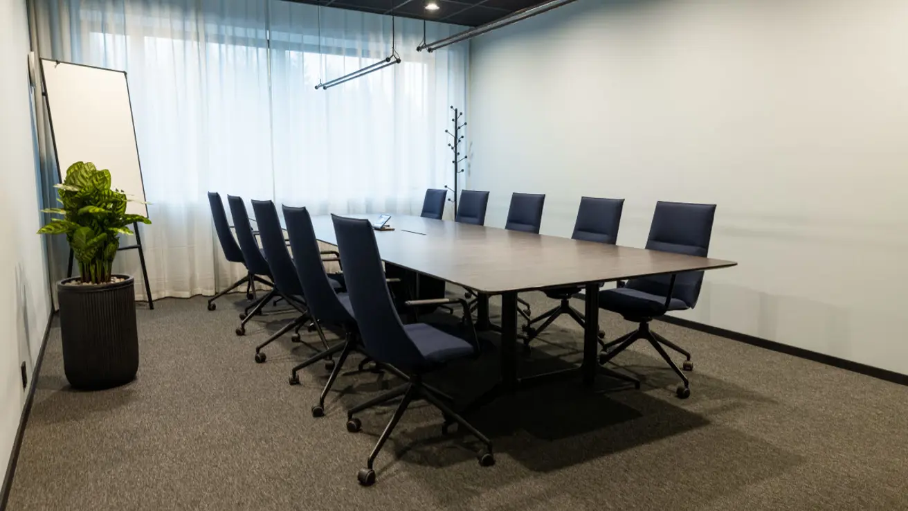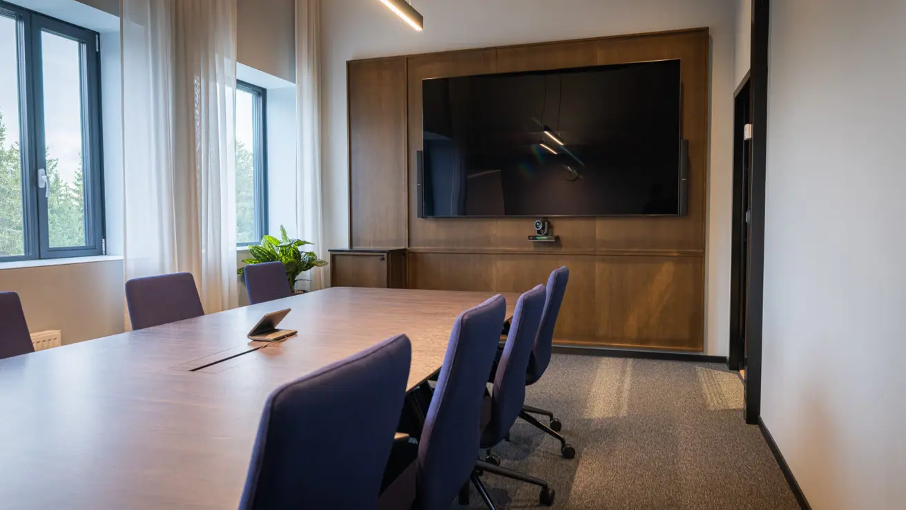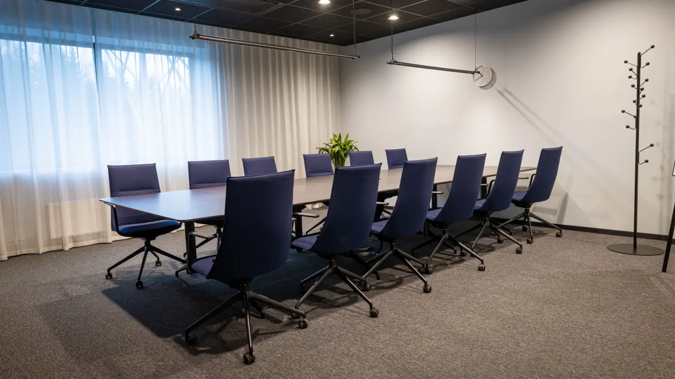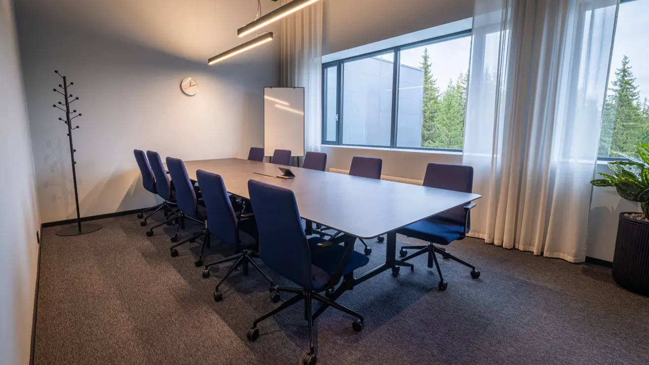 Stort og luftig møterom i andre etasje med mye dagslys. Kan deles i to ved behov.