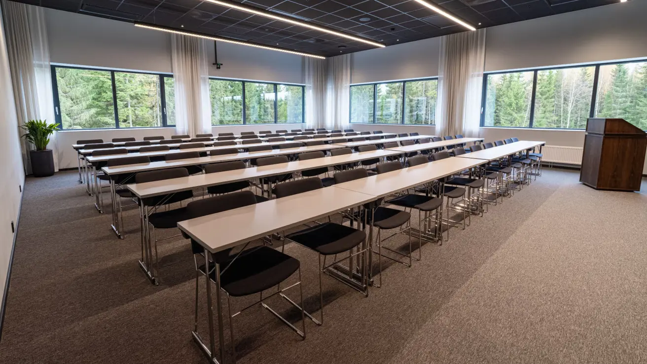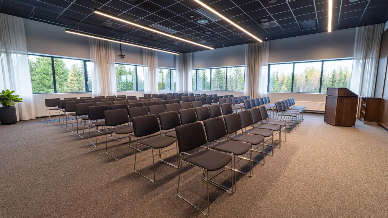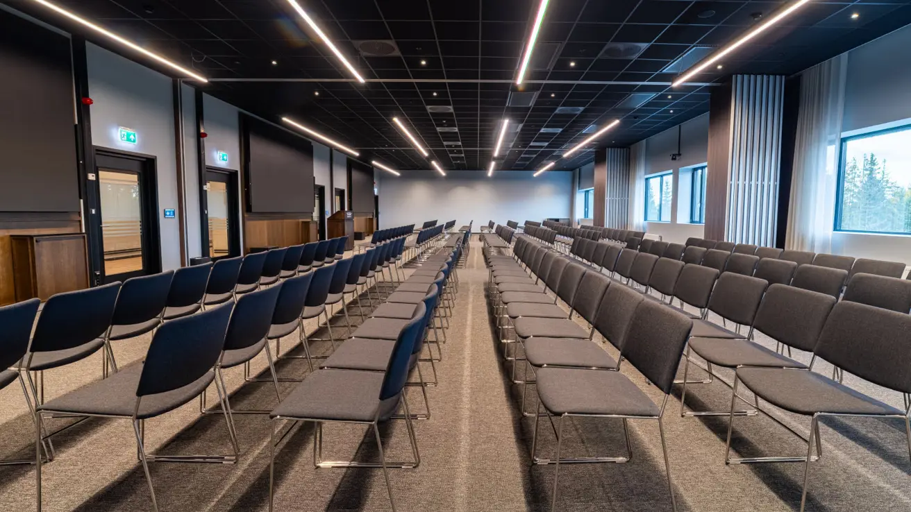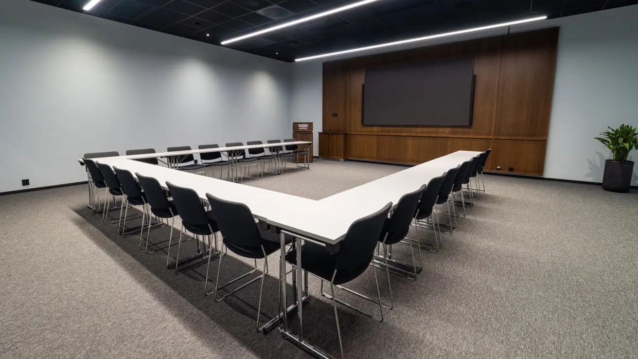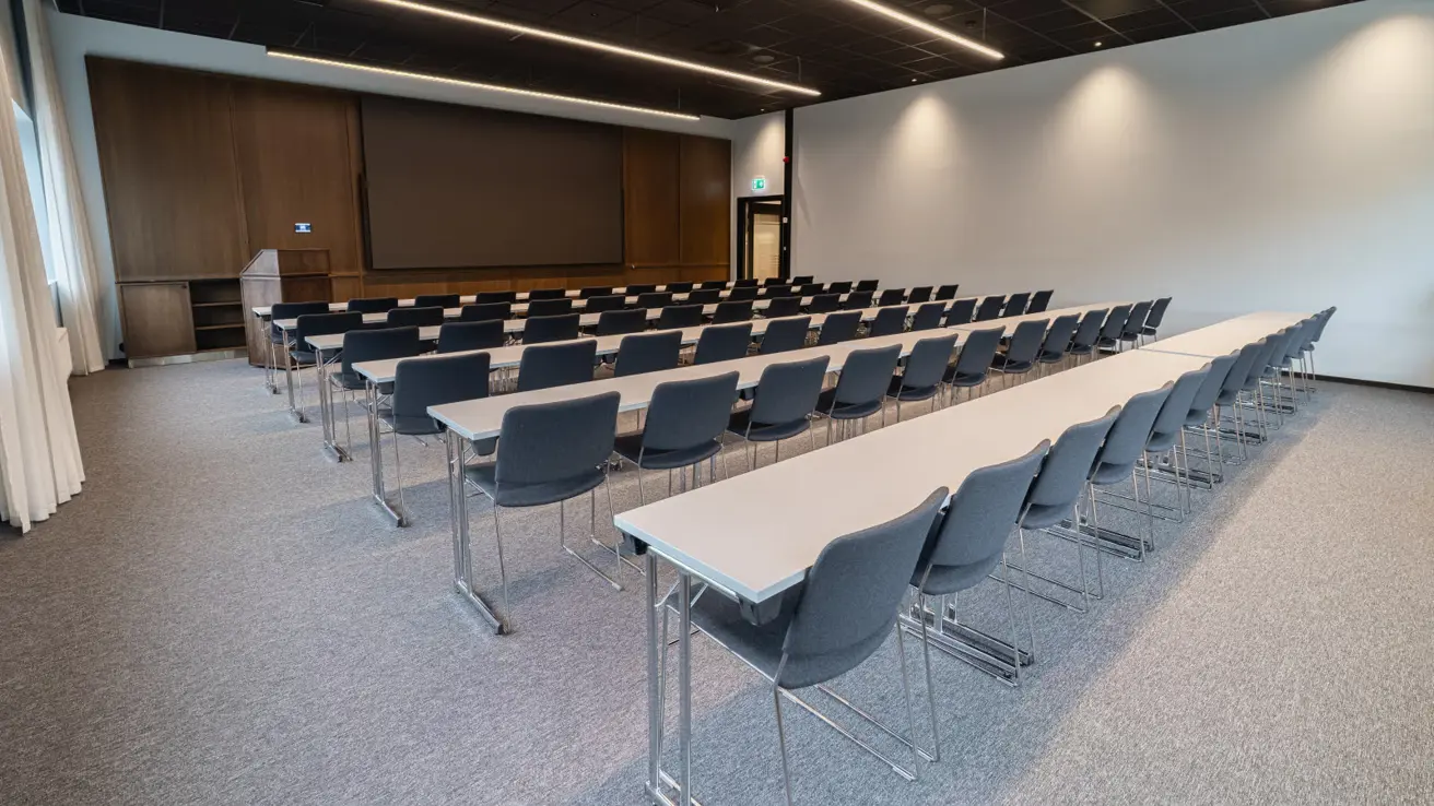 Stort og luftig møterom i andre etasje med mye dagslys. Kan deles i to ved behov.