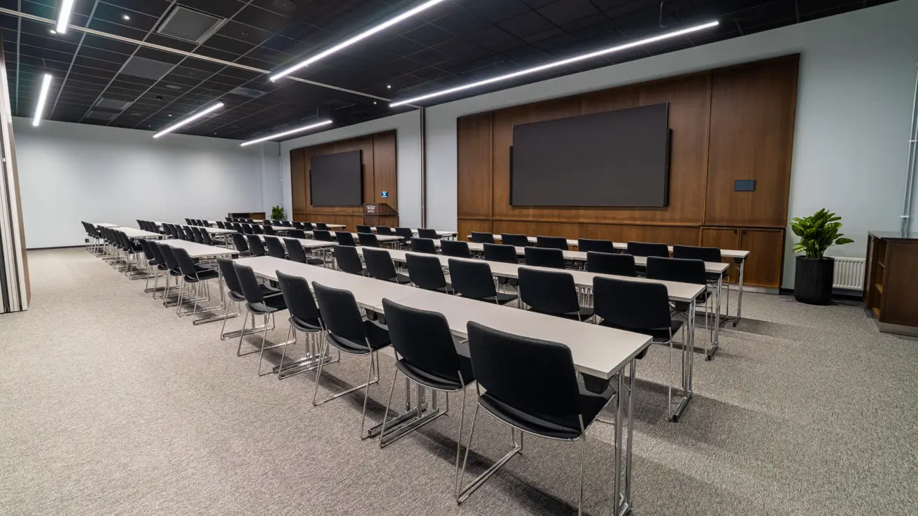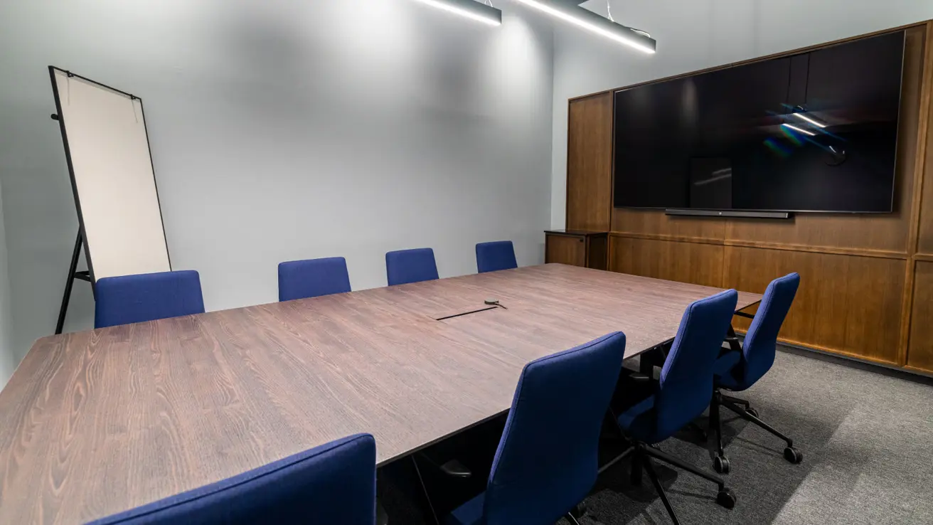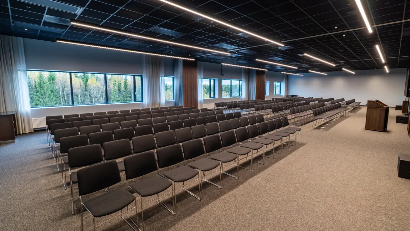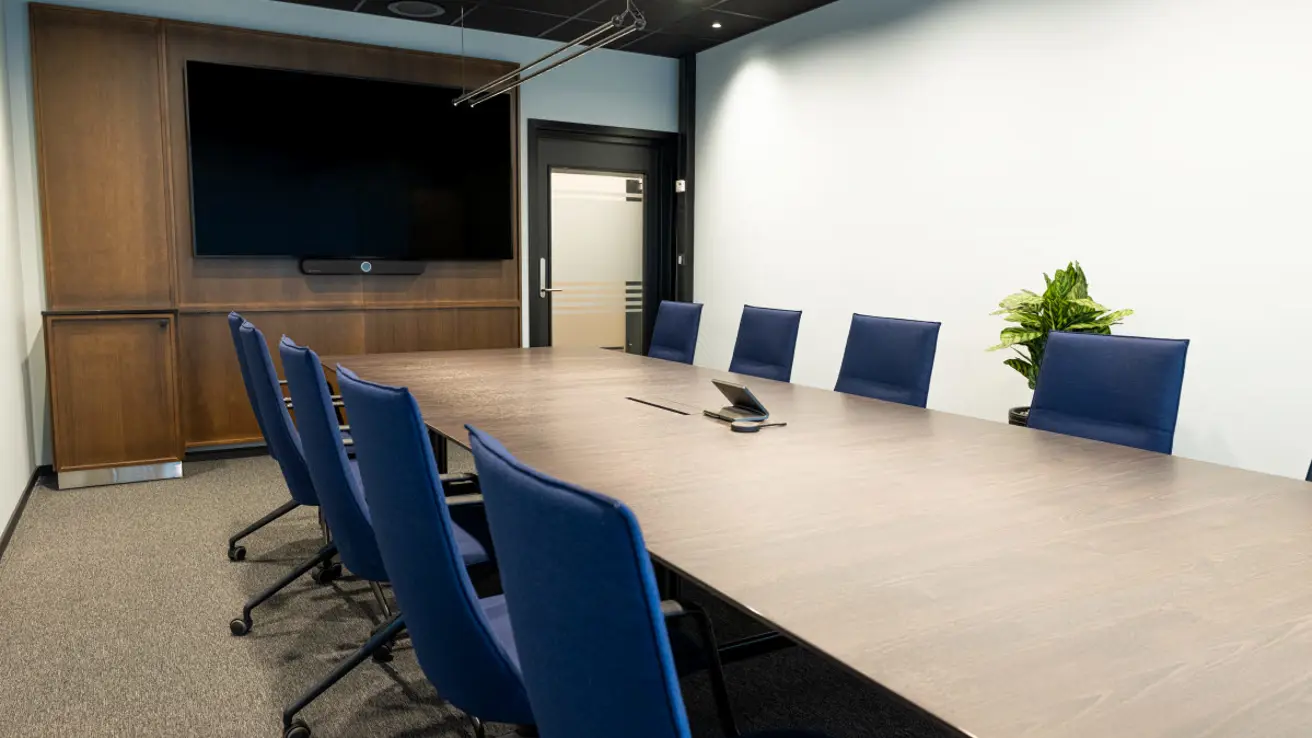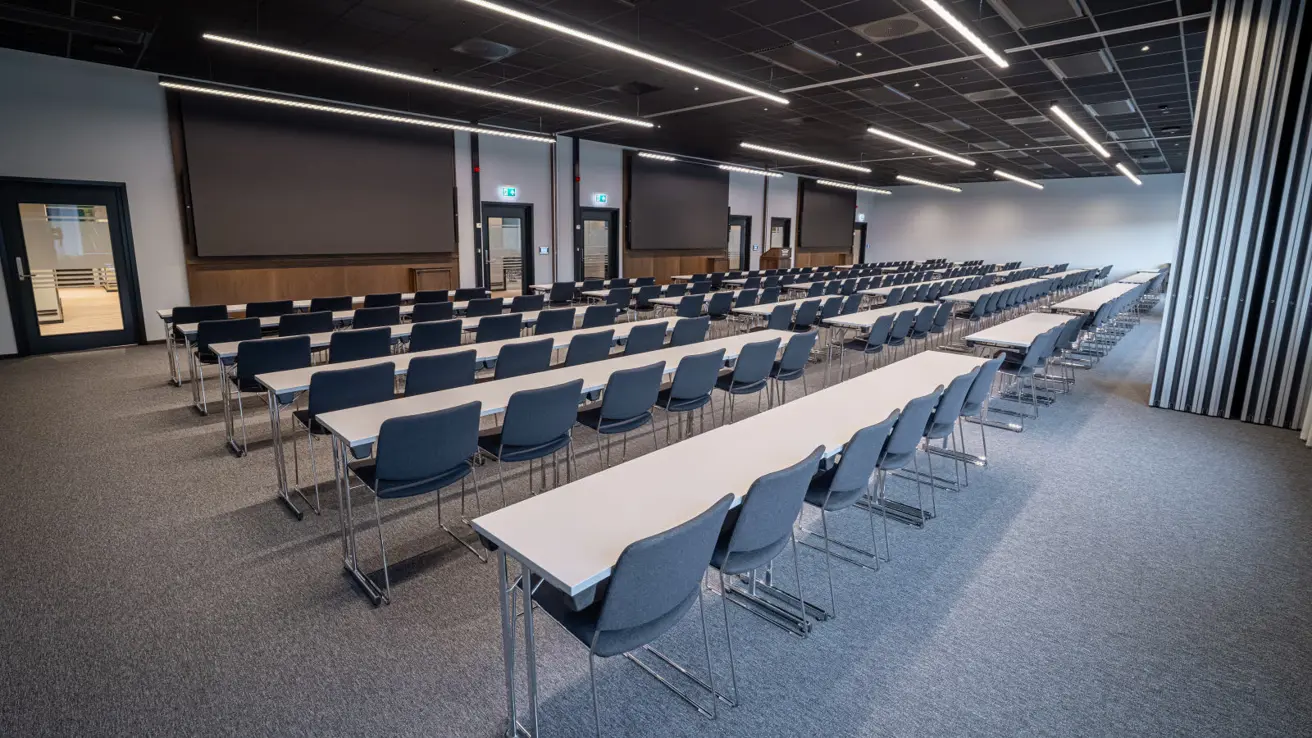 Stort og luftig møterom i andre etasje med mye dagslys. Kan deles i to ved behov.