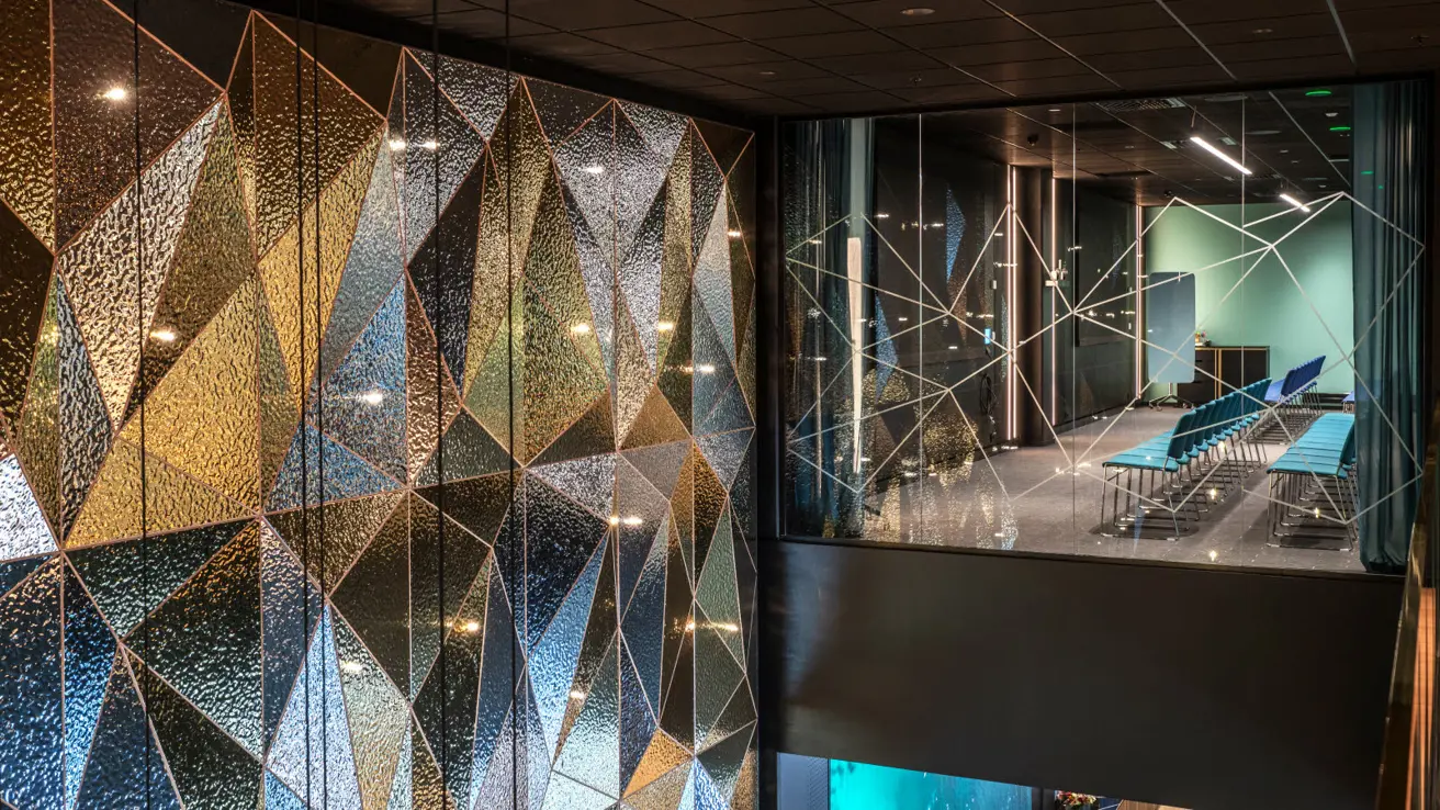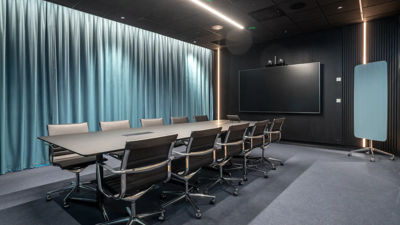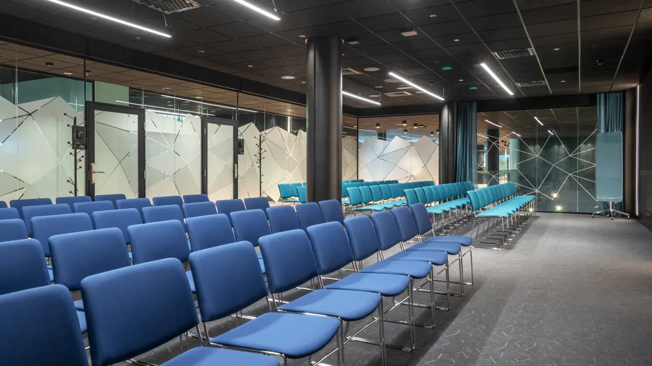 Moderne vergaderruimtes naast de ontmoetingsruimte, centraal gelegen in het conferentiedeel van het gebouw. Allergievriendelijk en geluiddempend tapijt.