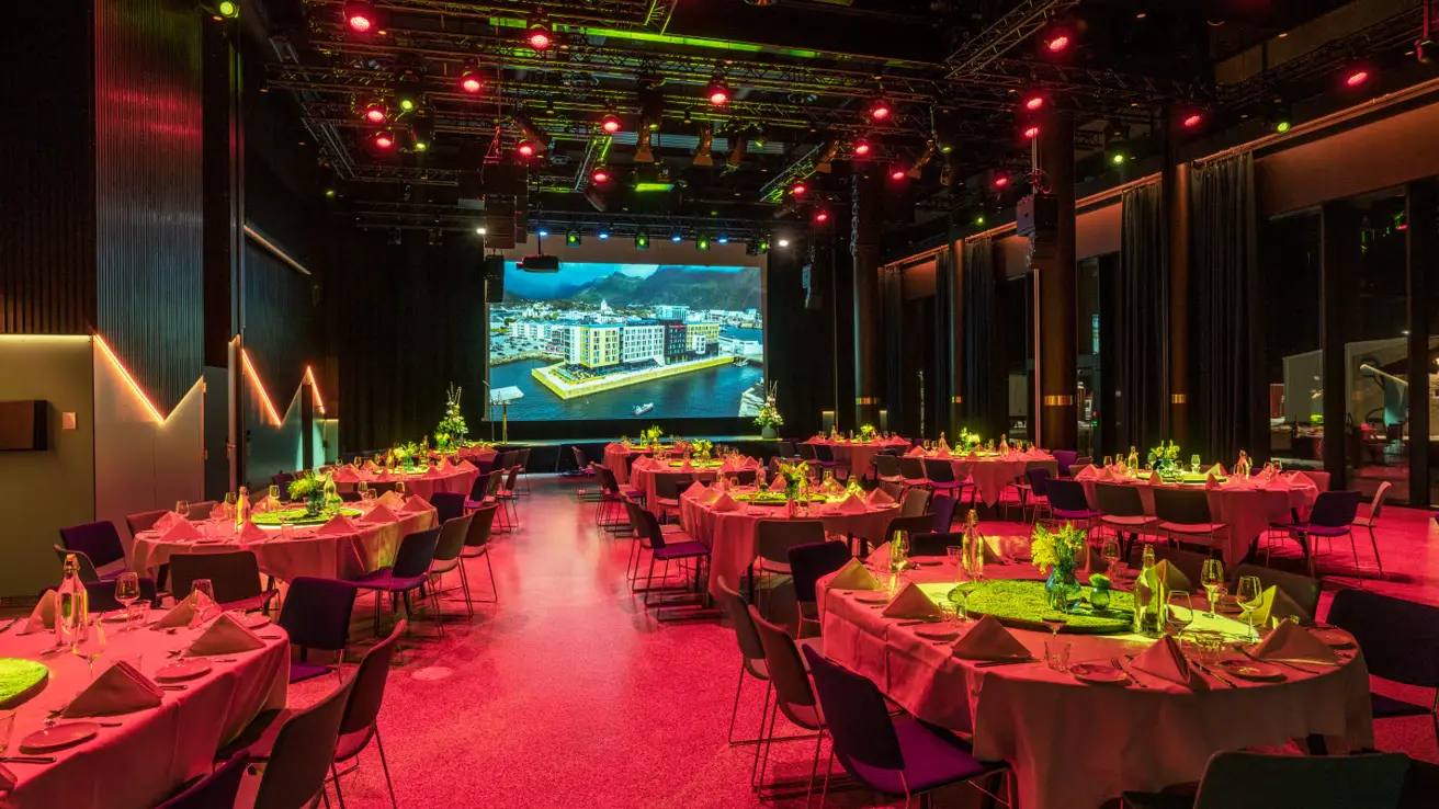 Thon Hotel Svolvær heeft een grote zaal voor maximaal 800 deelnemers, perfect voor grotere conferenties en evenementen. De zaal is een grote en luchtige zaal die kan worden aangepast aan verschillende evenementen en die ook in twee delen kan worden verdeeld.