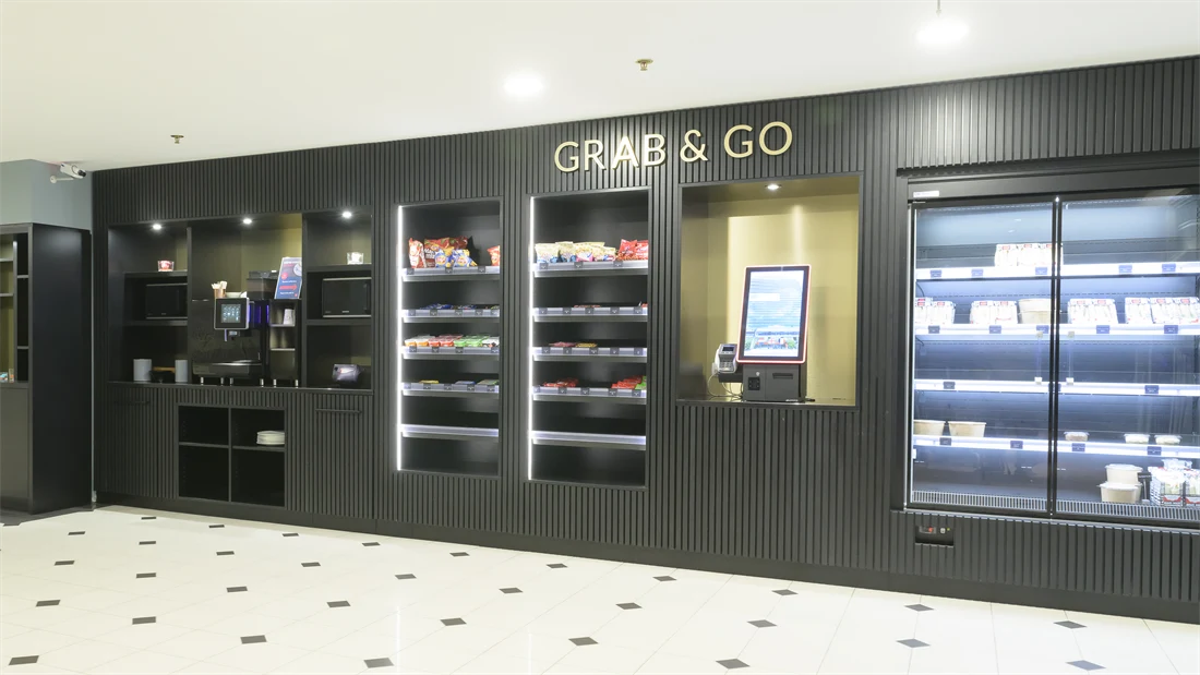 Hungrig? Her kan du købe måltider, snacks, drikke og praktiske artikler. Grab & Go ligger i stueetagen.