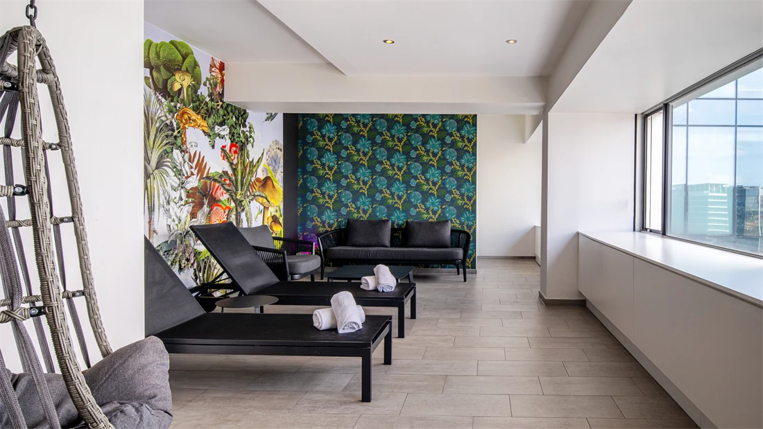 Ett stilfullt och hållbart hotell med färgstark design och modern komfort för både arbete och fritid.