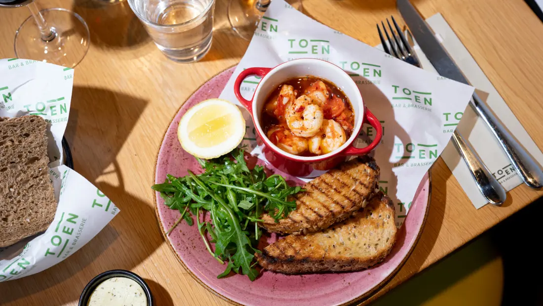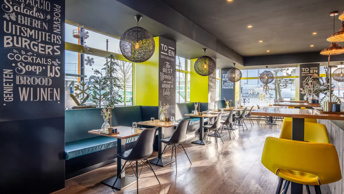 Brasserie Toen Bar & Brasserie är en modern och bekväm restaurang med fantastisk utsikt över Erasmusbron och floden Maas. På Toen Bar & Brasseriekan du koppla av med en kopp kaffe eller njuta av en god lunch eller middag i en inbjudande och avslappnad atmosfär.