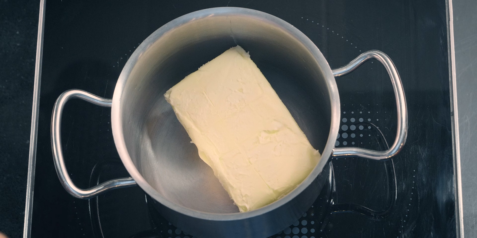 1. Legg smøret i en egnet kasserolle, og ha den over medium varme.